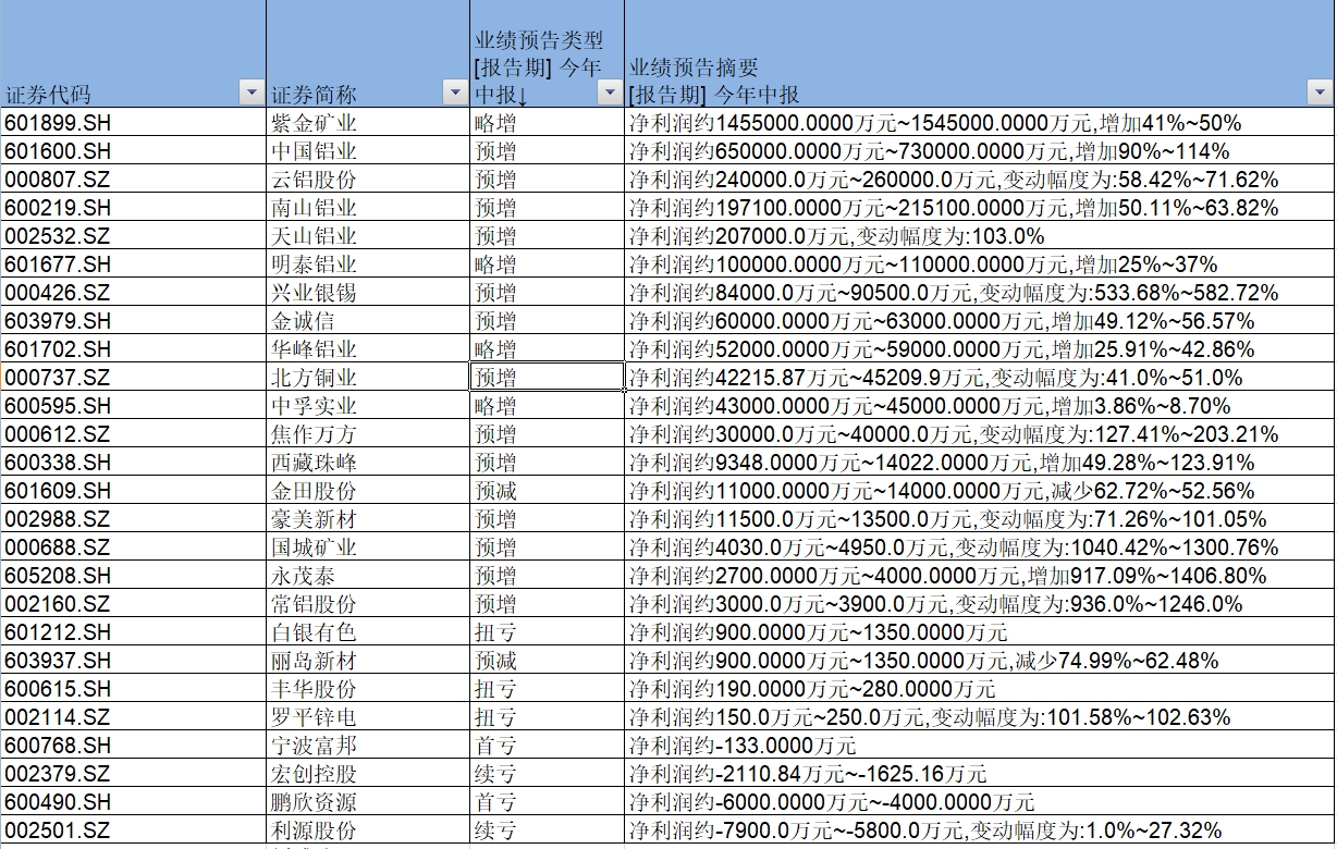 今年上半年,工业金属行业展现出强劲的复苏势头,多数企业也实现了业绩的增长。其中铜业、铝业成为行业盈利的主力。