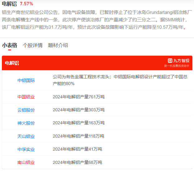 【热门题材】铝业股集体走高 中国铝业、闽发铝业等涨停