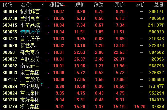 零售板块今日盘中再度活跃,截至收盘,杭州解百、兰州民百、小商品城、豫园股份、首商股份、新世界、南京新百、广百股份等涨停。值得注意的是,新免税龙头百联股份已连续六个交易日涨停,股价逼近历史新高。