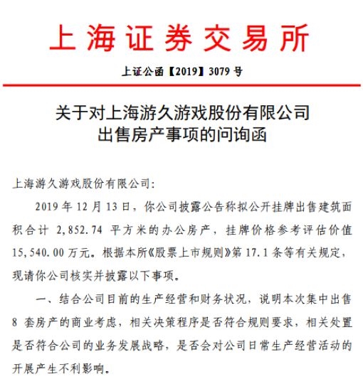 不过,公告发布当日,*ST游久就收到了上交所关于对公司出售房产事项的问询函,要求公司说明,出售8套房产的商业考虑,相关决策程序是否符合规则要求,相关处置是否符合公司的业务发展战略,是否会对公司日常生产经营活动的开展产生不利影响。同时,请公司披露增加年度8000万元利润的具体测算依据和计算过程,且明确交易后续收入确认时点及相关会计准则依据。