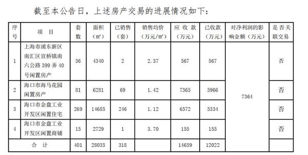 连续两年亏损,已经被实施退市警示的*ST海马于11月23日发布关于出售部分闲置房产的进展公告,称上半年计划出售的位于上海和海口的401套房产已销售318套,对净利润的影响金额为0.74亿元。