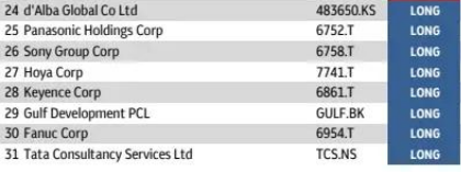 麦格理指出,整合后的亚洲重点关注名单凸显了该地区的投资机会,也更准确地反映了麦格理在 11 个亚洲国家和地区的业务布局。在这次一次性调整中,麦格理移除了大福、电装、Freee、美高梅中国、日本电气、Seven & i、浦项制铁 Future M(S)和伊藤忠商事。后两家公司是由于分析师覆盖范围的变化,而其他公司则是因为相对于整合后名单中的其他机会,麦格理对它们的确信度水平发生了变化。