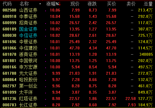 近日表现活跃的券商板块3日盘中仍延续强势,个股盘中再掀涨停潮。截至收盘,山西证券、中泰证券、招商证券、国金证券、中信证券、中银证券、中信建投等涨停。