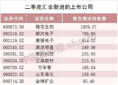 证金汇金新进重仓10股