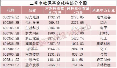 39只个股在二季度遭到社保基金的减持,阳光电源(300274)、悦达投资(600805)、生益科技(600183)、浙大网新(600797)、浙江龙盛(600352)被减持数量居前,减持数量均超过1400万股。