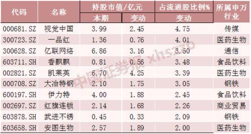 在增持个股中,今年4月遭遇“版权门”危机的视觉中国(000681)被社保基金大幅加仓。二季度末,社保基金持股占视觉中国流通股比例为6.63%,较上期增加4.75个百分点,持仓市值达到3.99亿元。