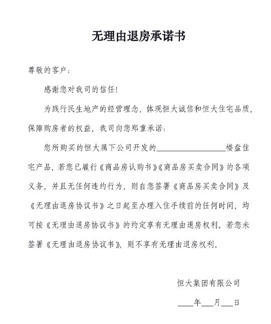 因而,恒大推出了两个重大保障:一是无理由退房。二是保证最低价,买贵补差价。
