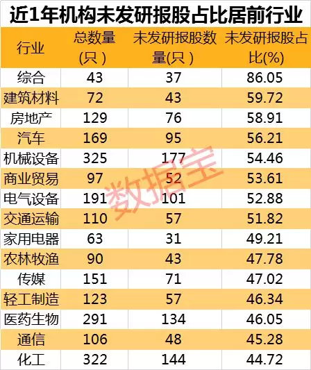机构投资者关注的股票,往往也会成为众多投资者追捧的对象。数据宝统计显示,近1年来获得机构关注股数据达到1954只(以研究报告数据为统计对象),也就是说除去这些外,还有近半数个股在近1年机构未发过相关研究报告。