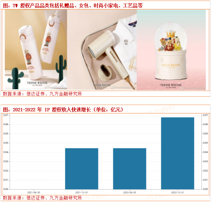 对品牌IP 资产再培育,提升 TW 品牌 IP 资产的价值和影响力。基于品牌丰富的 IP 资产,公司对于 TEENIE WEENIE 的卡通形象、家族故事、品牌故事及商标使用权等深度挖掘加工,迭代设计出符合年轻消费群体审美的小熊家族卡通和潮玩形象、延续开发小熊家族系列故事。公司对品牌的 IP 资产进行再培育,不断提升 TEENIE WEENIE 品牌 IP 资产的价值和影响力。