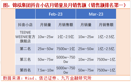 公司在抖音直播平台精准定位目标人群,TEENIE WEENIE 品牌定位于 18-25 岁少女,但品牌定位中高端,客单价较高,因此 30-41 岁的具有一定消费能力的女性为直播间的核心消费人群。自 2023 年 2 月以来,Teenie Weenie 官方旗舰店月直播销量超过 10w,销售额超过 1 亿,位于抖音女装带货榜榜首。