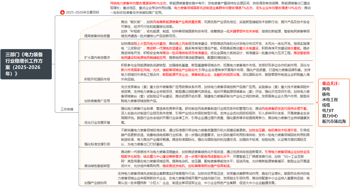事件:9月12日,三部门印发《电力装备行业稳增长工作方案(2025-2026年)》