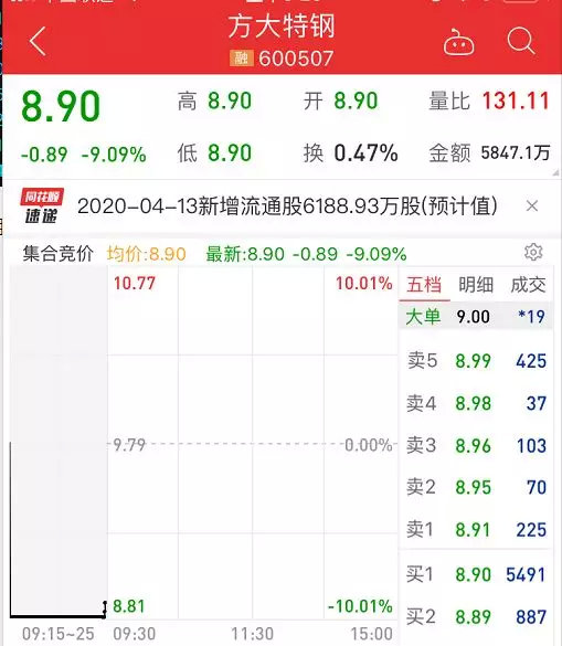 今早开盘,方大特钢股票暴跌9.09%,股价报8.90元。市值损失10亿元。