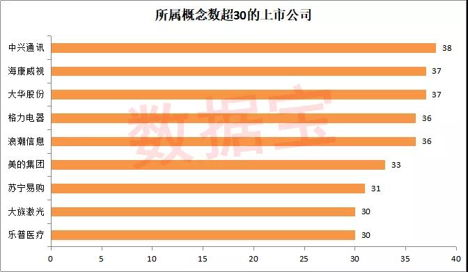 证券时报·数据宝统计显示,截至最新收盘日,平均每家A股公司所属概念数达到6个。717家公司所属概念数超10个,其中9家公司所属概念超过30个。
