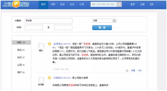 据不完全统计,今年以来,在深交所互动易和上交所e互动平台上,热门网红主播的名字有关的问题累计达73条和53条,而有关网红经济的提问则分别高达501条和238条。