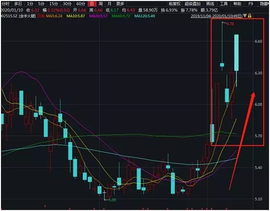 而让投资者感到惊奇的是,一场5分钟的直播,第二天上市公司就直接拉升涨停了。数据显示,从1月5日直播后至今,金字火腿的股价从5.64元涨至最高6.78元,股价涨幅超20%,市值直接飙升10亿元。