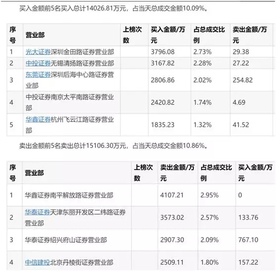 以12月31日龙虎榜数据为例,当天买入前五金额高达1.4亿元,卖出金额高达1.5亿元,占当天总成交金额的20%,而连续多日的成交,游资交易总量已经占据该股区间总成交额的三分之一。不少营业部席位均是双向操作,一边推高股价后一边获利了结,成为经典套路。