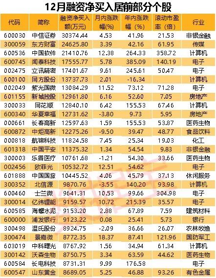 12月以来,893股获杠杆资金净买入,中信证券融资净流入3.04亿元排名第一。