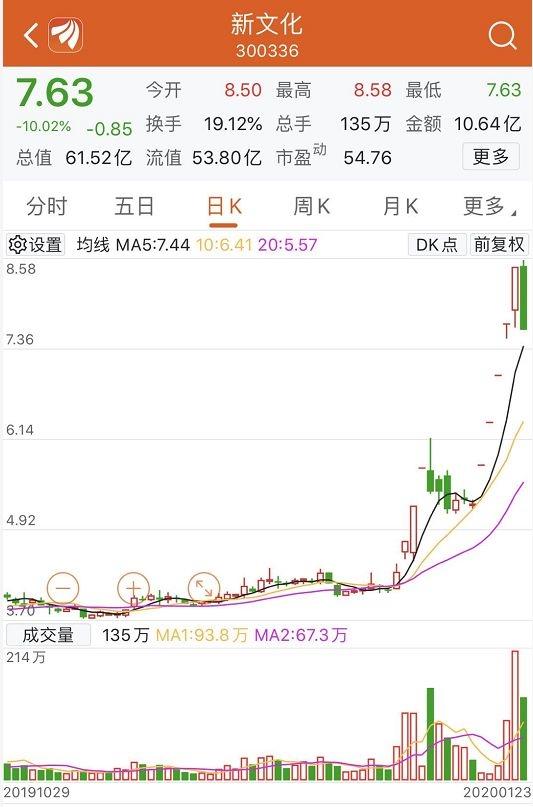牵手李佳琦的消息一传出,新文化连续两日涨停。在此之后,1月17日,新文化披露股票交易异常波动公告。又在1月20日(周一)、1月21日,新文化股票继续涨停,短短几日,新文化市值飙升近20亿元。