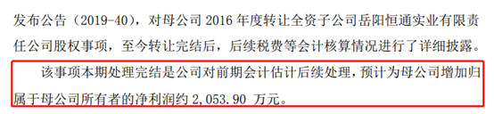 值得注意是,恒立实业报告期内的业绩增长主要来源于对全资子公司的股权转让。