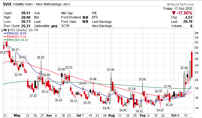 本周五,VIX指数在盘中就最高触及了28.99,创下了四月底以来的最高水平。尽管收盘时回落至了20附近,但依然位于年内罕见的高位。