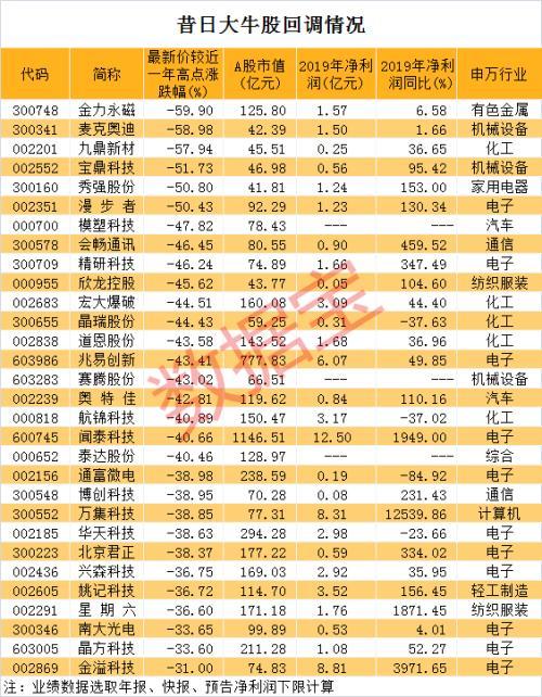 大牛股回调榜出炉!最惨腰斩过半