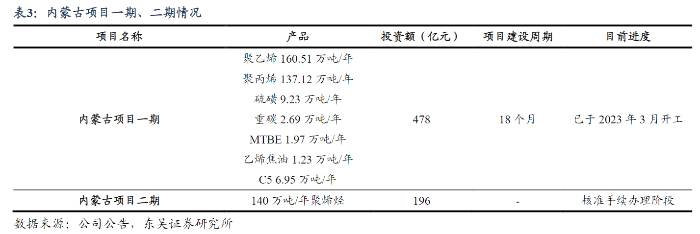 公司内蒙古项目具备区位优势,运输成本低,相比其他煤制烯烃龙头成本优势,项目选址于鄂尔多斯市乌审旗苏格里经济开发区图克工业项目区,位于我国煤炭重要产区,且相较宁东能源化工基地更接近华东、华北等下游销售区域,兼具原材料和产品销售的运输成本优势,能够降低公司综合成本,增强公司盈利能力。