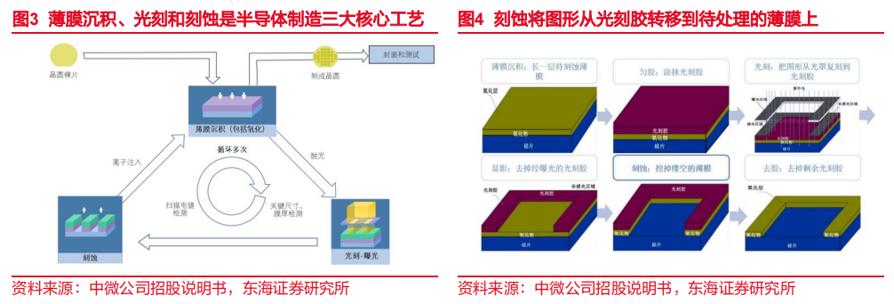 刻蚀工艺是半导体加工的核心环节之一,通过物理或化学的方法,把光刻胶上图形转移到薄膜,去除光刻胶后,即完成图形从光罩到晶圆的转移,从而在薄膜上得到所需图形。