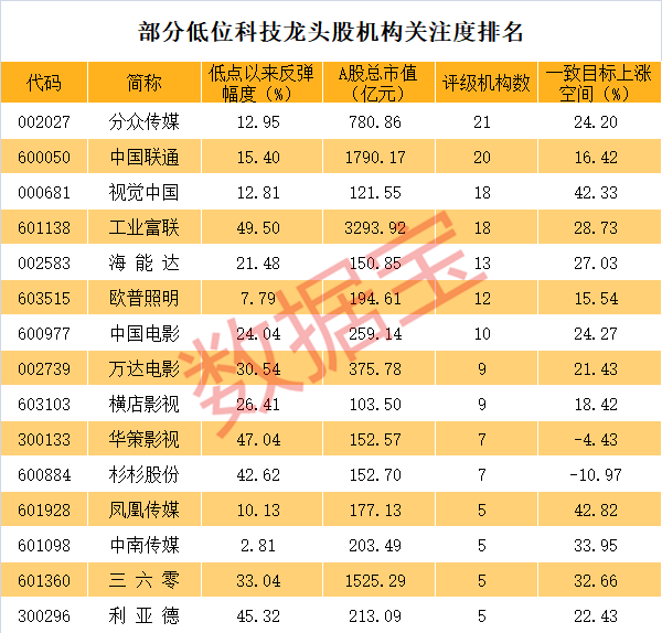 低位科技龙头股名单