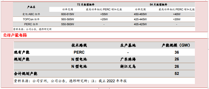 爱旭股份深耕太阳能电池片领域14年,积累了雄厚的技术实力,在光伏电池片领域具有技术领先地位。根据半年报,爱旭新一代N型ABC项目珠海首期6.5GW项目已投产,爱旭预计2023年下半年将实现批量出货。