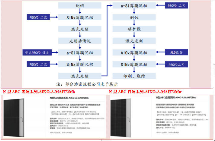 爱旭股份使用光伏全无银金属涂布技术,其中激光设备、PECVD设备、涂布机设备等较为核心。