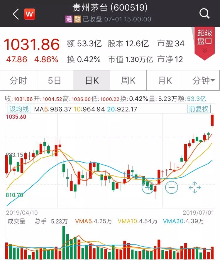 以行业龙头贵州茅台为例,该股今日大涨4.86%,最新股价成功突破千元,成为A股历史上真正意义上的千元股。茅台股价持续上涨,机构对其的关注也持续不断,太平洋最近一份关于贵州茅台的研报表示,目前市场上茅台酒“一瓶难求”的供需格局来看,下半年茅台酒价格继续向上的趋势不变,贵州茅台作为龙头的确定性仍是最高,享受龙头高溢价,提高目标价到1240元。