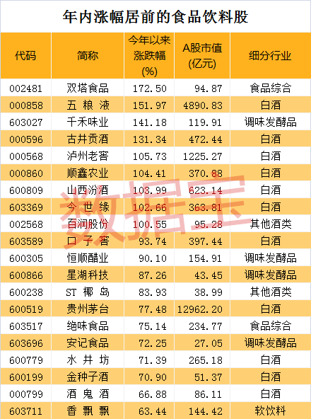 集体飙升,食品饮料板块坐稳涨幅榜冠军,这9股已翻倍