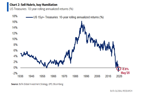 Hartnett称,在2025年,“没有比做多长期债券更具逆向投资价值的策略了”。