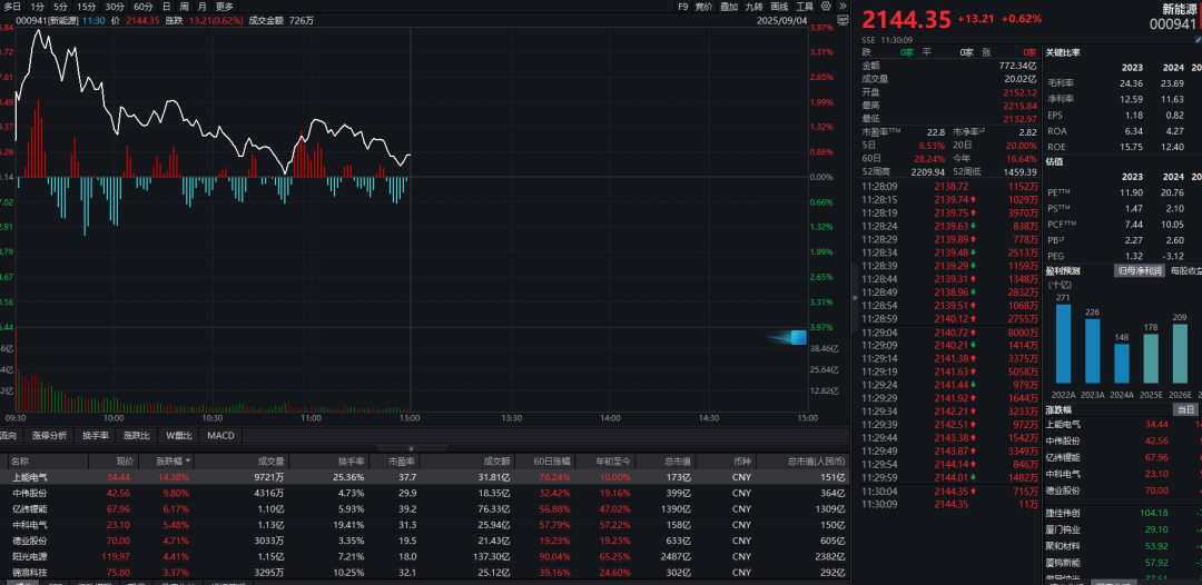 新能源赛道股票上午整体逆势走强,多股盘中涨幅超过10%,成为A股上午市场最大亮点之一。