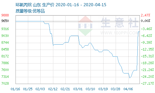 根据公开信息,4月14日环氧丙烷全国均价为9200元/吨,相比4日前(4月10日),价格上涨了21%。目前,华东地区环氧丙烷市场主流报价在8400-8600元/吨附近,山东地区环氧丙烷市场主流报价在9400-9600元/吨附近。