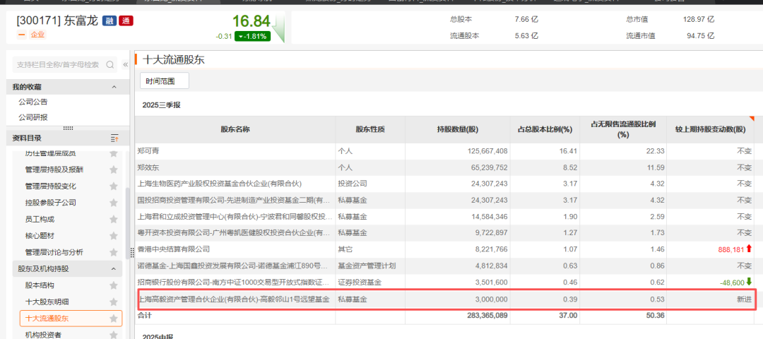 东富龙近日发布三季报显示,截至三季度末,冯柳管理的高毅邻山1号远望基金新进该公司前十大流通股股东名单,持股数量为300万股。