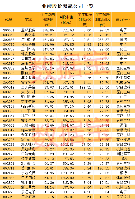 数据宝按照以下条件,筛选出股价表现及业绩表现同样完美的上市公司: