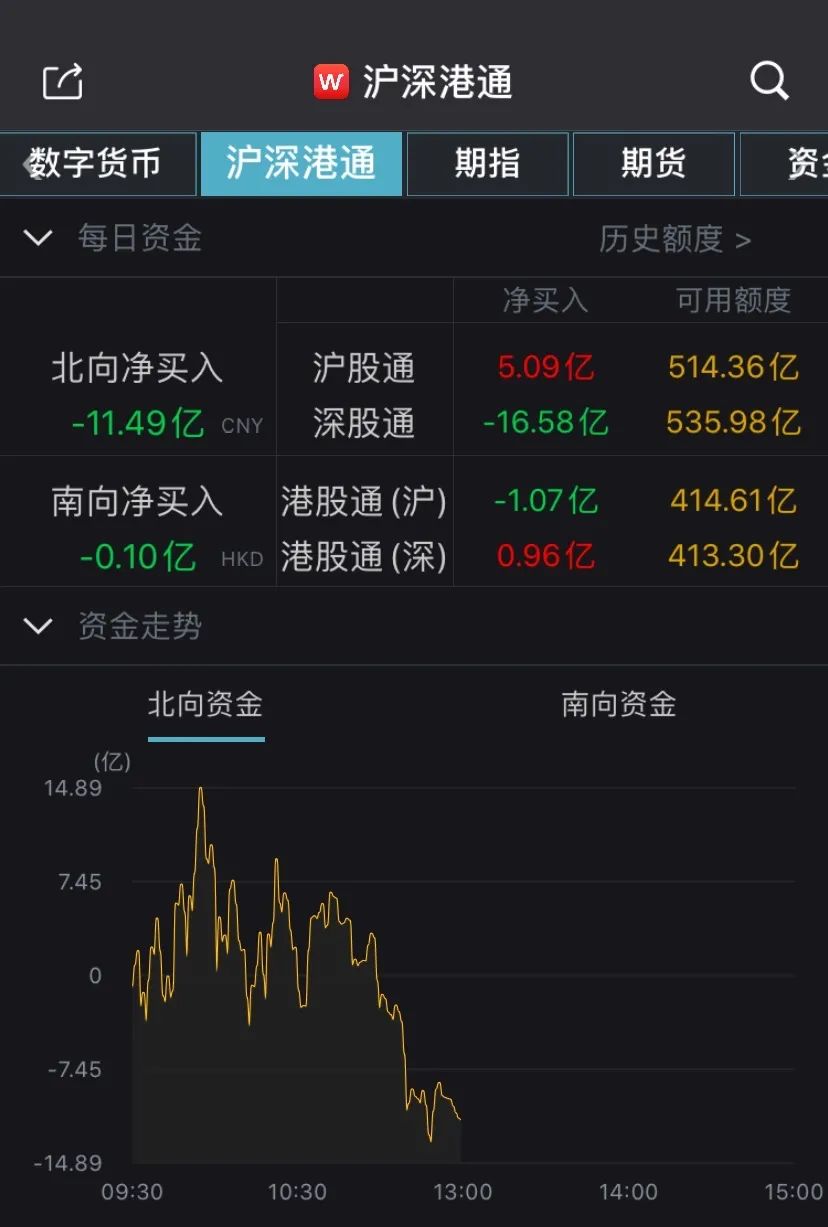 Wind数据显示,截至午间收盘,北向资金半日净流出11.49亿元,其中沪股通净流入5.09亿元,深股通净流出16.58亿元。
