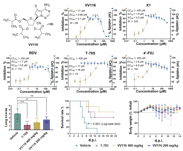 武汉病毒所肖庚富/张磊砢、单超团队合作发现口服核苷药物VV116对尼帕病毒的高效抑制活性