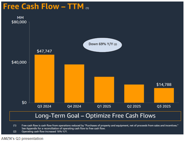 当涉及第四季度之后的产能建设时,EPS增长机会看起来更加清晰,因为他们实质上是在为其利润率最高的业务部门定位,以在未来几年贡献超常的运营收入。Nova Capital称,这也是认为针对2027财年EPS数据的下修过于激进的原因。市场将逐渐意识到,这种负面情绪并未得到亚马逊实际执行情况的支持。