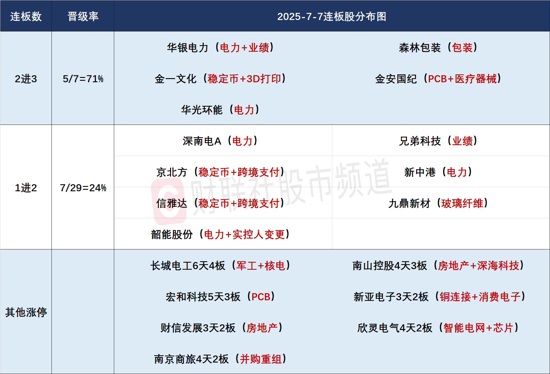 7月7日连板分析:市场高度降至3板!电力板块领涨