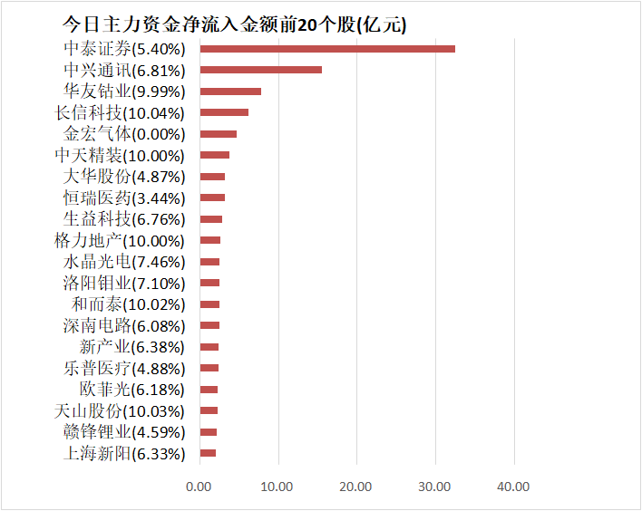 今日沪深两市主力资金开盘净流入5.72亿元,尾盘净流入31.94亿元,两市全天资金净流入56.12亿元。