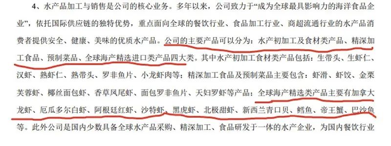 其中,三文鱼是公司众多全球海产精选进口类产品中的一员,年报中所涉及的篇幅并不多。公司表示,持续开发三文鱼等品类,目的是进一步提高除对虾之外的其他综合品类占比。