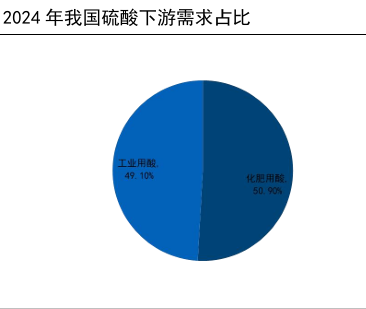 硫酸最重要的应用是制备化肥,在钛白粉、己内酰胺、磷酸铁的制备过程中同样有重要应用。2019年全球55%的硫酸被用来制备化肥。2024年我国约51%的硫酸被用于化肥工业,其余则被用于制备钛白粉、己内酰胺、氢氟酸、磷酸铁等产品。2024年中国硫酸表观消费量达1.175亿吨,同比增长7.6%,其中化肥用酸(占比50.9%,约5978.7万吨),磷肥(磷酸一铵、磷酸二铵):占总消费36.9%,约4336万吨,其他化肥(硫酸铵、普钙等):占总消费约14%,约1643万吨。工业用酸(占比49.1%,约5776万吨),钛白粉(硫酸法):占总消费13.4%,约1575万吨,己内酰胺:占总消费6.5%,约764万吨。