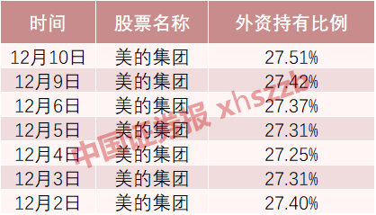 根据深交所网站显示,截至12月10日,外资持有美的集团比例达27.51%,创历史新高,逼近“限购线”28%。