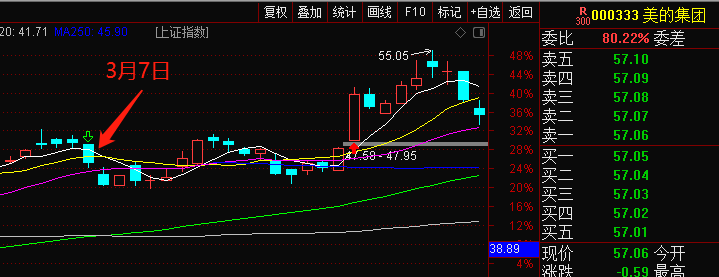 事实上,从美的集团股价走势上,也能够看出资金的态度。在经历了3月7日、3月8日两日下跌后,股价下探至44元一线,随后美的集团股价并没有继续下探,反而成为了阶段性底部,并就此一路震荡上涨,于11月8日创出了历史新高60.80元/股。