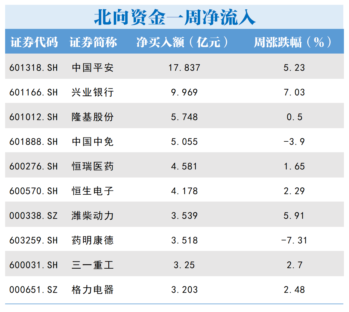 本周,北向资金净流入55.1亿元,其中沪股通净流入84.40亿元,深股通净流出29.29亿元。