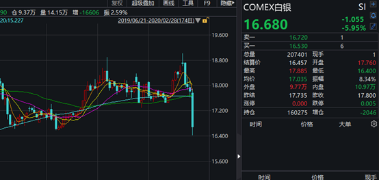 更为惨烈的是白银价格。COMEX白银期货暴跌近6%。