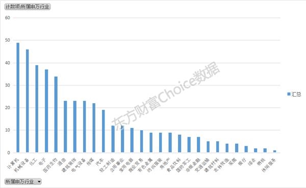 上述435家公司在全部28个申万一级行业中,计算机行业公司数量居首,共49家,机械设备行业公司数量也超40家、化工、电子、医药生物均超30家公司上榜。
