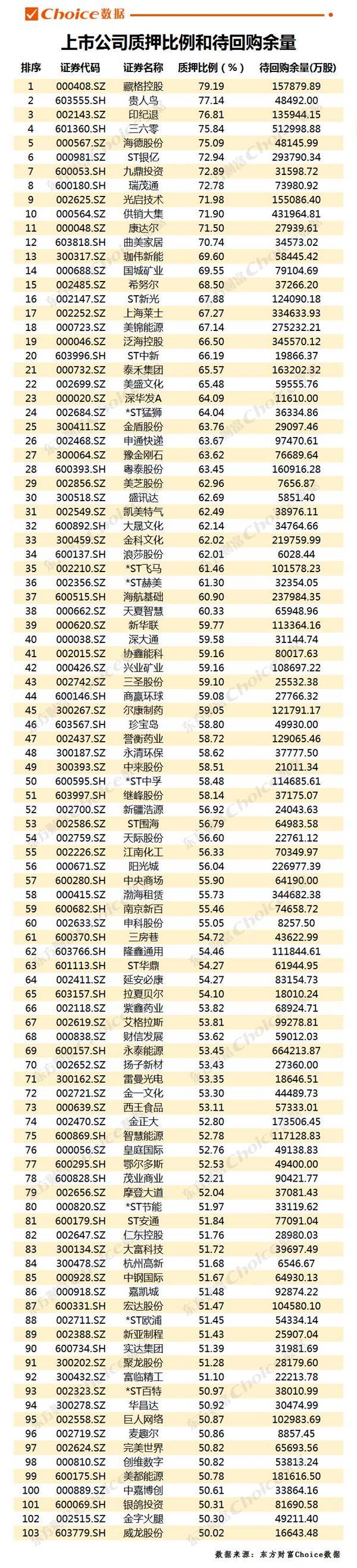其中,103家质押股份占总市值比重逾五成,其中12家质押股份占总市值比重超七成。